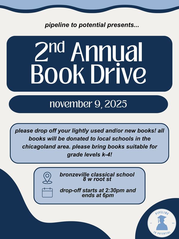 Please drop off your lightly used and/or new books! All books will be donated to local schools in the Chicagoland area. Please bring books suitable for grade levels K-4!