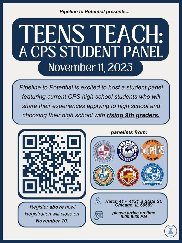 A student panel featuring current CPS high school students who will share their experiences applying to high school and choosing their high school with rising 9th graders.
